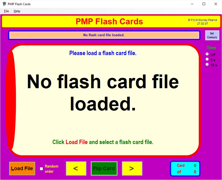 When you first run PMP Flash Cards, the program displays its window as below .